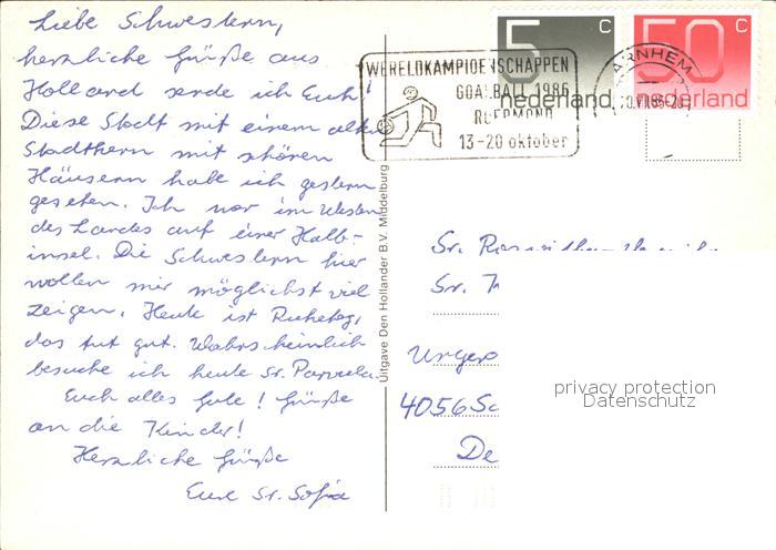 old postcard Zierikzee Kirche Bruecke Hafen postalisch gelaufen Erhaltung siehe scans