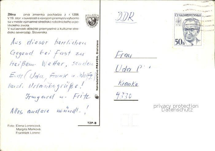 old postcard Zilina postalisch gelaufen Erhaltung siehe scans