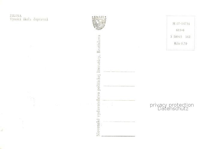 73793321 Zilina Sillein Silein SK Vysoka skola dopravna postalisch nicht gelaufen Erhaltung siehe scans [LiesaD40] Lies Katcode 11490