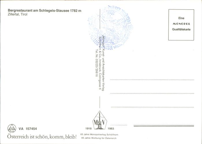 71419971 Zillertal Tirol Bergrestaurant am Schlegels-Stausee KatCode 22440000005700