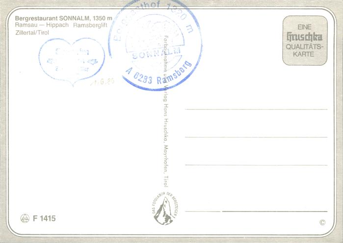 71436196 Zillertal Tirol Bergrestaurant Sonnalm KatCode 22440000005700