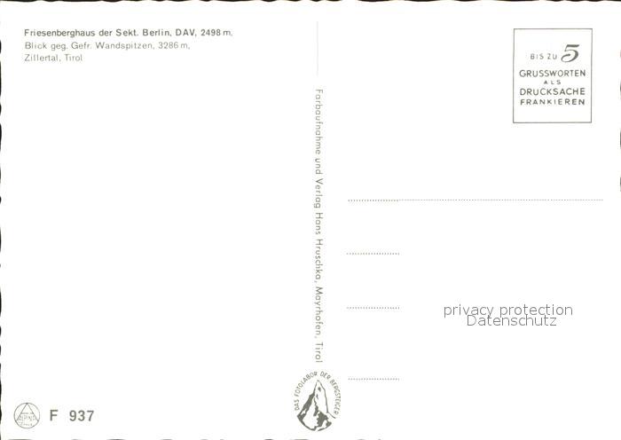 Zillertal Tirol Friesenberghaus Sekt Berlin Gefr Wandsp