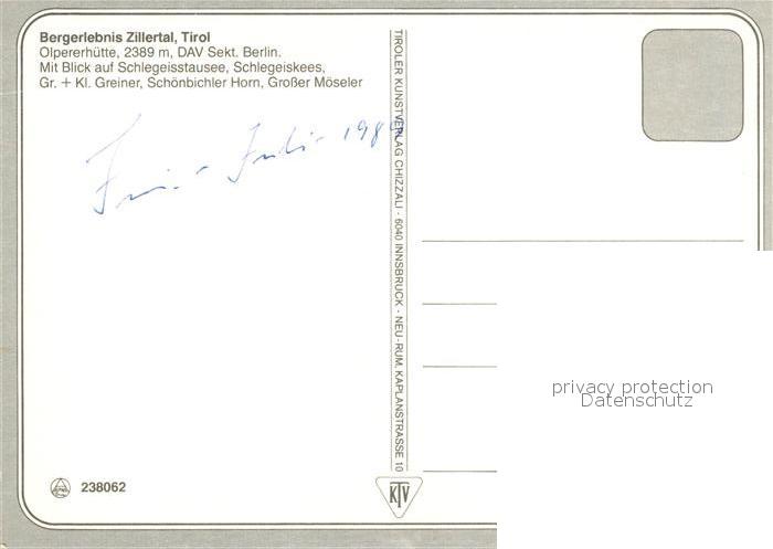 73242202 Zillertal Tirol Olpererhütte Schlegeisstausee KatCode 22440000005700