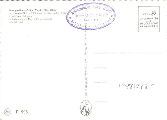 72438809 Zillertal Tirol Tirol Alpengasthaus Grüne Wand Hütte Kasseler Spitze Keilbachspitze KatCode 22440000005700