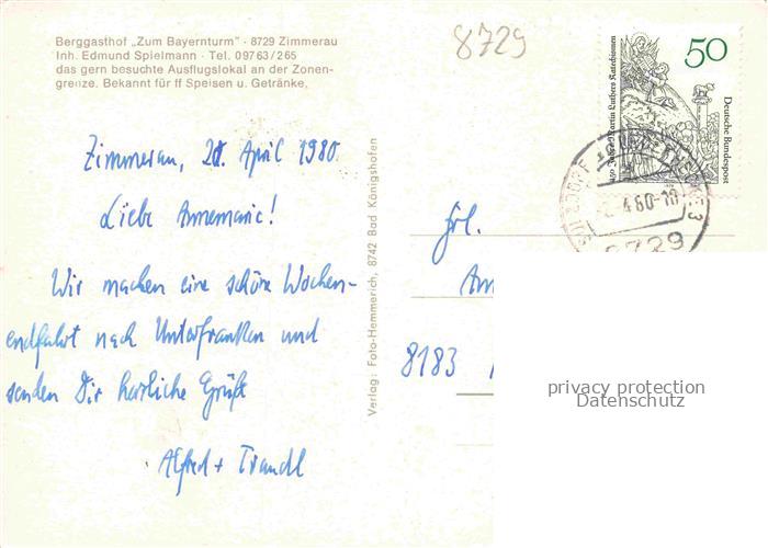 74054440 alte Postkarte Zimmerau Rhoen-Grabfeld Berggasthof zum Bayernturm Gastraeume Zimmer postalisch gelaufen Erhaltung siehe scans [WerneD78] KatCode: 11110009673172