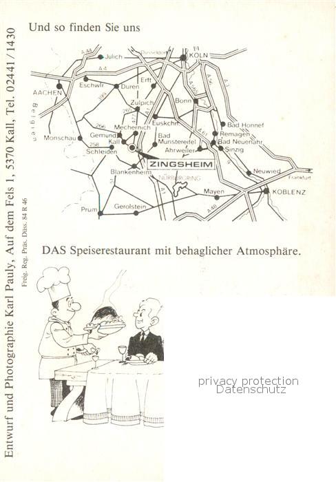 73658609 Zingsheim DAS Speiserestaurant Fliegeraufnahme Landkarte Partie am Wasser Autobahnbruecke postalisch nicht gelaufen Werbekarte (keine Postkarte) Erhaltung siehe scans [FriedD77] KatCode: 11110005366032
