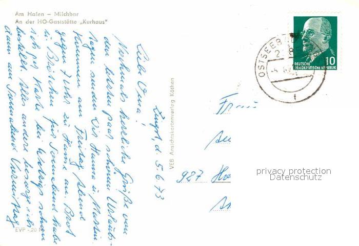 72704298 alte Postkarte Zingst Ostseebad Am Hafen Milchbar An der HOG Kurhaus postalisch gelaufen Erhaltung siehe scans [FriedD77] KatCode: 11110013057096