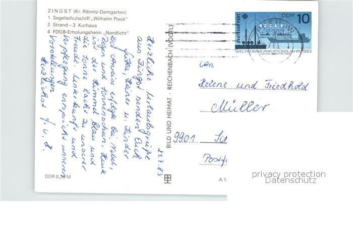 72503890 alte Postkarte Zingst Ostseebad Darss Strand Segelschulschiff Wilhelm Pieck Kurhaus Erholungsheim-Nordlicht postalisch gelaufen Erhaltung siehe scans KatCode: 11110013057096
