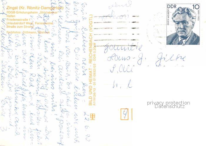72616278 alte Postkarte Zingst Ostseebad FDGB Erholungsheim Stoertebeker Hafen Friedensstrasse Urlauberdorf postalisch gelaufen Erhaltung siehe scans [FriedD77] KatCode: 11110013057096
