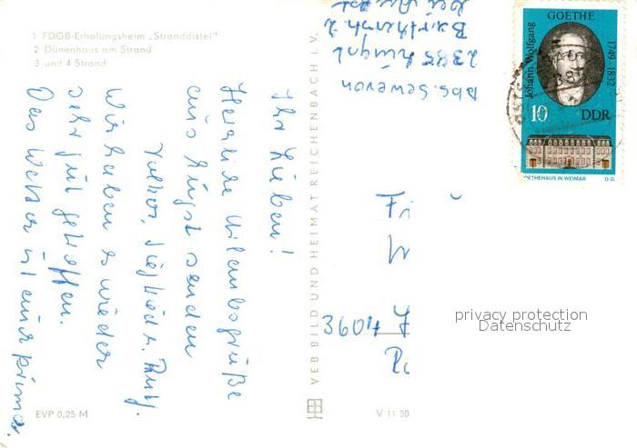 73045011 alte Postkarte Zingst Ostseebad FDGB Erholungsheim Stranddistel Duenenhaus Strand postalisch gelaufen Erhaltung siehe scans [WerneD78] KatCode: 11110013057096