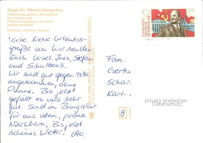 72418362 alte Postkarte Zingst Ostseebad FDGB Erholungsheim Stranddistel Fischerstrand FDGB Erholungsheim Nordlicht Urlauberdorf West postalisch gelaufen Erhaltung siehe scans KatCode: 11110013057096