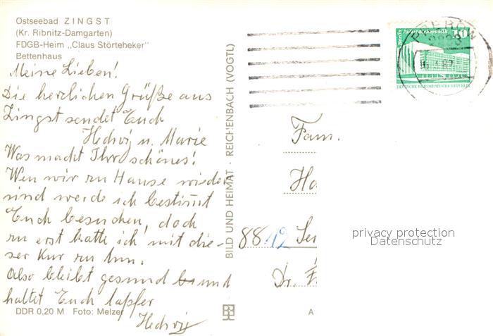 72942034 alte Postkarte Zingst Ostseebad FDGB Heim Claus Stoertebeker Bettenhaus postalisch gelaufen Erhaltung siehe scans [FriedD77] KatCode: 11110013057096