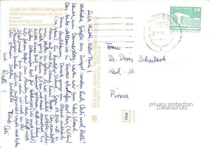 72458854 alte Postkarte Zingst Ostseebad FDGB Urlauberrestaurant Kurhaus Kirche Katen Stoertebekerstrasse Strand postalisch gelaufen Erhaltung siehe scans KatCode: 11110013057096