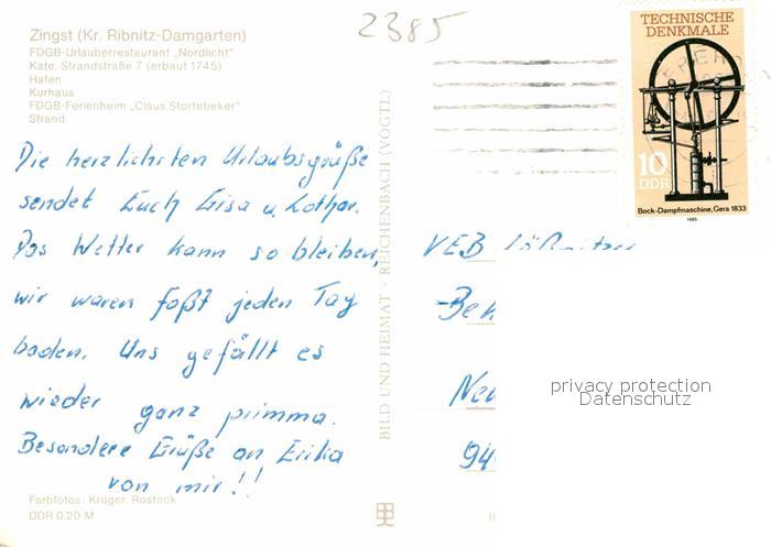 72750666 alte Postkarte Zingst Ostseebad FDGB Urlauberrestaurant Nordlicht Kate Hafen Kurhaus Strand postalisch gelaufen Erhaltung siehe scans [KathaD81] KatCode: 11110013057096