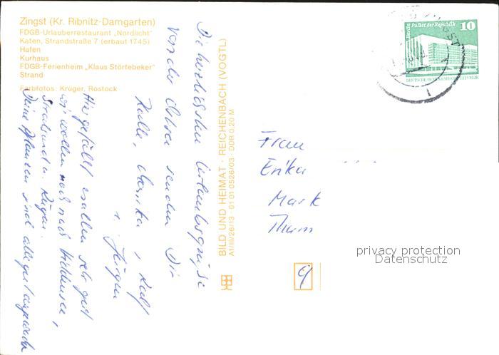 72261009 alte Postkarte Zingst Ostseebad FDGB Urlauberrestaurant Nordlicht Katen Hafen Kurhaus FDGB Ferienheim Stoertebeker Strand postalisch gelaufen Erhaltung siehe scans KatCode: 11110013057096