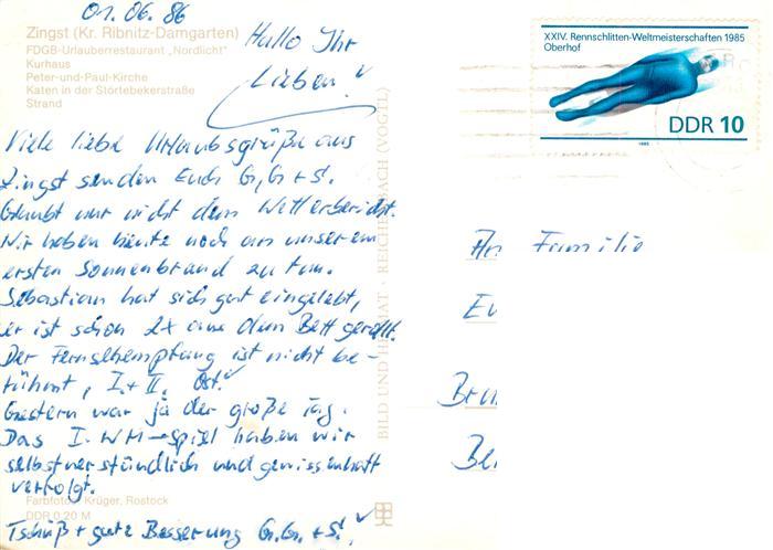 73914145 alte Postkarte Zingst Ostseebad FDGB Urlauberrestaurant Nordlicht Kurhaus Peter und Paul Kirche Katen in der Stoertebekerstrasse Strandpartie postalisch gelaufen Erhaltung siehe scans [WerneD78] KatCode: 11110013057096