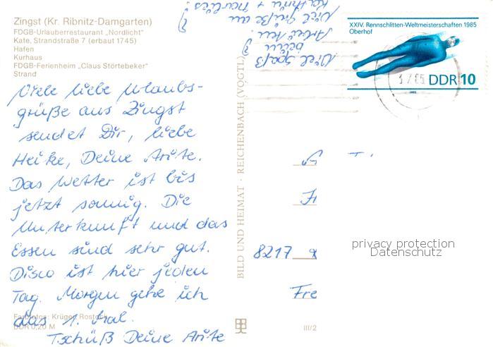 73868557 alte Postkarte Zingst Ostseebad FDGB Urlaubsrestaurant Nordlicht Kate Strandstrasse Hafen Kurhaus FDGB Ferienheim Claus Stoertebeker Strand postalisch gelaufen Erhaltung siehe scans [WerneD78] KatCode: 11110013057096