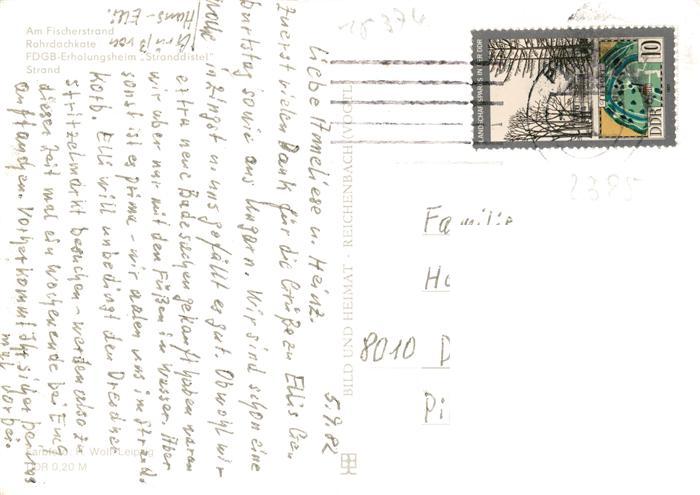 73899984 alte Postkarte Zingst Ostseebad Fischereistrand Rohrdachkate FDGB Erholungsheim Stranddistel Strandpartie postalisch gelaufen Erhaltung siehe scans [WerneD78] KatCode: 11110013057096