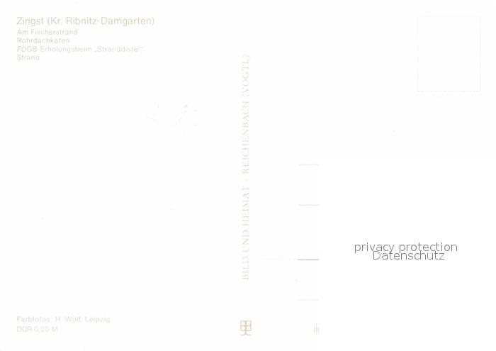 72781919 Zingst Ostseebad Fischerstrand Rohrdachkaten FDGB Erholungsheim Strand postalisch nicht gelaufen Erhaltung siehe scans [FriedD77] KatCode: 11110013057096