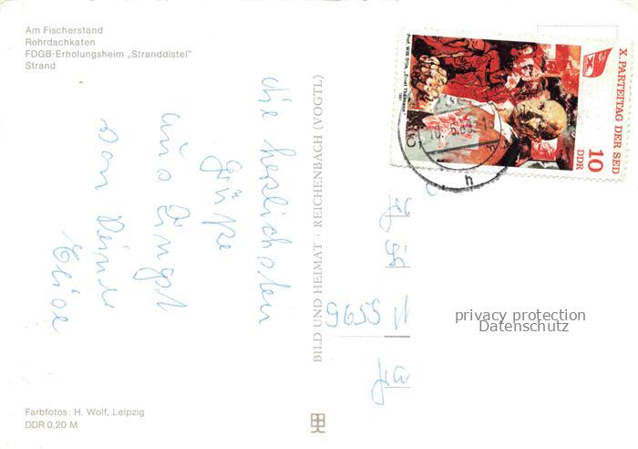 74137673 alte Postkarte Zingst Ostseebad Fischerstrand Rohrdachkaten FDGB ERholungsheim Stranddistel Strandpartie postalisch gelaufen Erhaltung siehe scans [WerneD78] KatCode: 11110013057096
