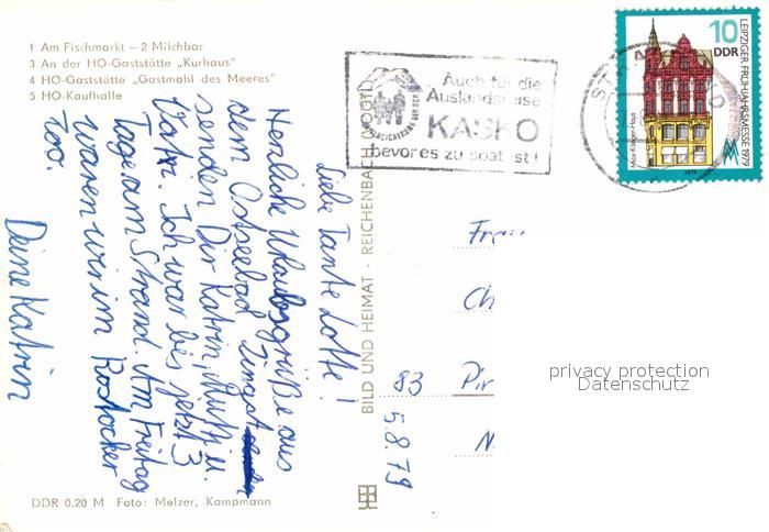 72641650 alte Postkarte Zingst Ostseebad Fischmarkt Milchbar HO Gaststaette Kurhaus Gastmahl des Meeres postalisch gelaufen Erhaltung siehe scans [KathaD79] KatCode: 11110013057096