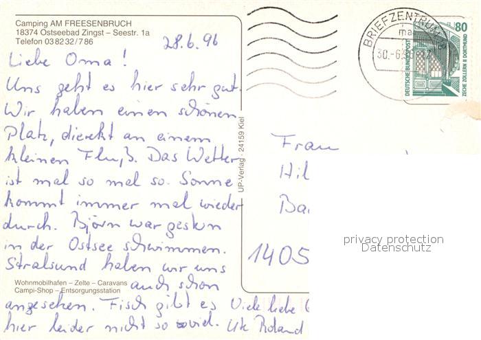 73110909 alte Postkarte Zingst Ostseebad Fliegeraufnahme Camping Am Freesenbruch postalisch gelaufen Erhaltung siehe scans [NatalD47] KatCode: 11110013057096