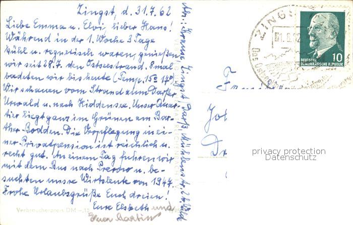 72401528 alte Postkarte Zingst Ostseebad Hafen Strand Wohnhaus Karl Marx Platz Milchbar Kurgarten postalisch gelaufen Erhaltung siehe scans KatCode: 11110013057096