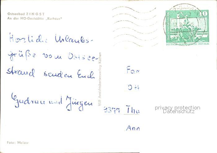 72326181 alte Postkarte Zingst Ostseebad HO-Gaststaette Kurhaus postalisch gelaufen Erhaltung siehe scans KatCode: 11110013057096
