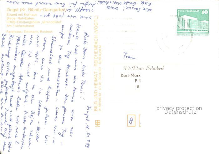 72186571 alte Postkarte Zingst Ostseebad Strand Kurhaus Blauer Rohrkaten Erholungsheim Stranddistel postalisch gelaufen Erhaltung siehe scans KatCode: 11110013057096
