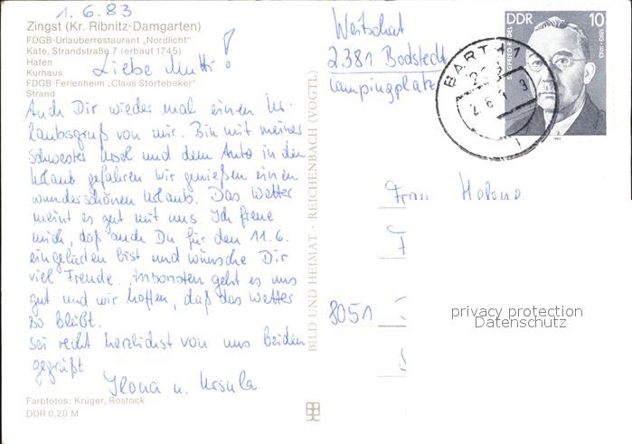 72455903 alte Postkarte Zingst Ostseebad Urlauberrestaurant Nordlicht Kate StrandCafe Hafen Kurhaus postalisch gelaufen Erhaltung siehe scans KatCode: 11110013057096