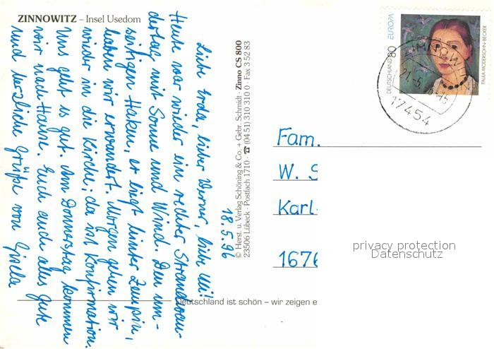 72815271 alte Postkarte Zinnowitz Ostseebad postalisch gelaufen Erhaltung siehe scans [NatalD47] KatCode: 11110013059107