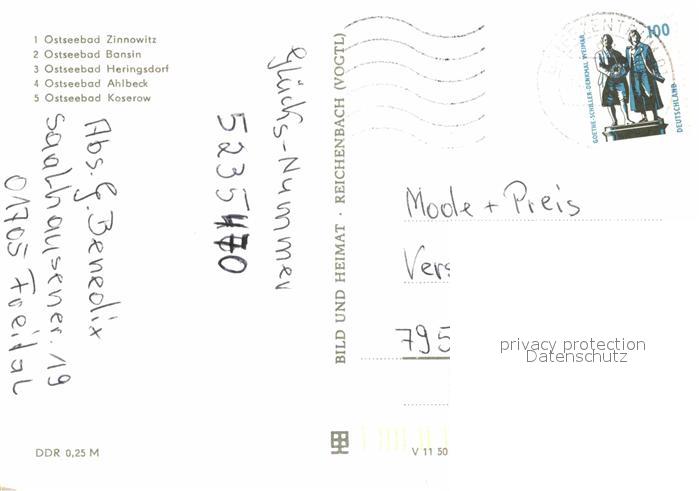 72646001 alte Postkarte Zinnowitz Ostseebad Bansin Heringsdorf Ahlbeck Koserow Straende Seebruecke postalisch gelaufen Erhaltung siehe scans [LiesaD40] KatCode: 11110013059107