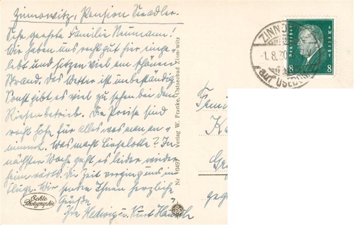 73940255 alte Postkarte Zinnowitz Ostseebad Blick von Schwabes Hotel auf Gartenanlagen und Strand postalisch gelaufen Erhaltung siehe scans [WerneD78] KatCode: 11110013059107