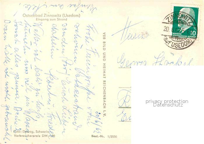 72815581 alte Postkarte Zinnowitz Ostseebad Eingang zum Strand Promenade postalisch gelaufen Erhaltung siehe scans [FriedD77] KatCode: 11110013059107