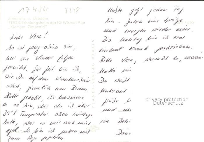72477027 Zinnowitz Ostseebad Erholungsheim Klement Gottwald postalisch nicht gelaufen Erhaltung siehe scans KatCode: 11110013059107