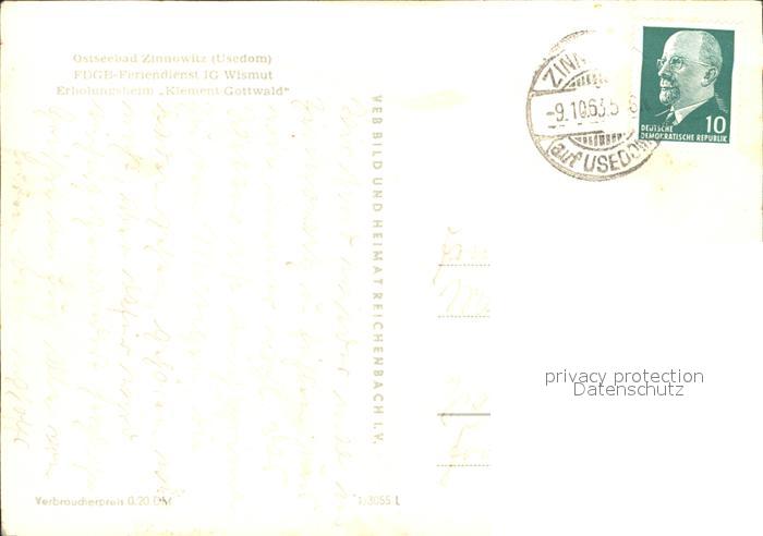 72365474 alte Postkarte Zinnowitz Ostseebad Erholungsheim Klement Gottwald postalisch gelaufen Erhaltung siehe scans KatCode: 11110013059107