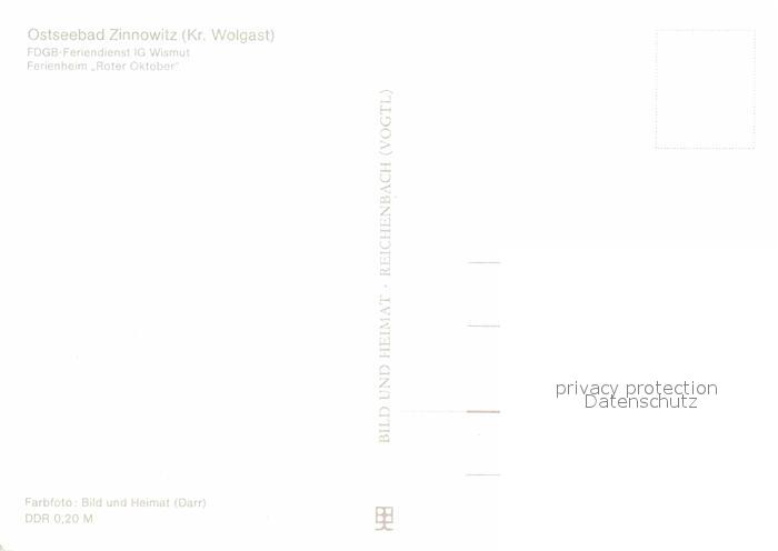 72617181 Zinnowitz Ostseebad FDGB Erholungsheim IG Wismut Ferienheim Roter Oktober postalisch nicht gelaufen Erhaltung siehe scans [WerneD78] KatCode: 11110013059107