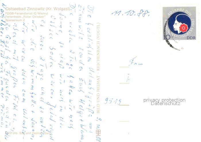 72678578 alte Postkarte Zinnowitz Ostseebad FDGB Feriendienst IG Wismut Ferienheim Roter Oktober Speiseraum postalisch gelaufen Erhaltung siehe scans [FriedD77] KatCode: 11110013059107