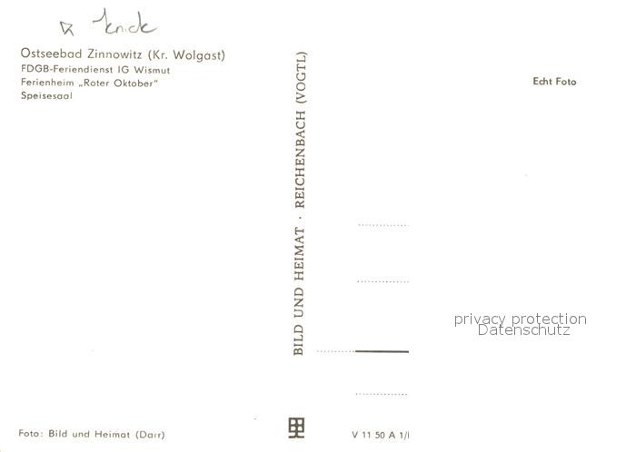 72945753 Zinnowitz Ostseebad FDGB Feriendienst IG Wismut Ferienheim Roter Oktober Speisesaal postalisch nicht gelaufen Erhaltung siehe scans [FriedD77] KatCode: 11110013059107