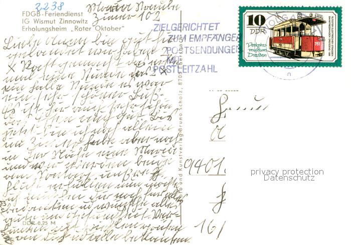 73722380 alte Postkarte Zinnowitz Ostseebad FDGB Feriendienst IG Wismut Zinnowitz Erholungsheim Roter Oktober postalisch gelaufen Erhaltung siehe scans [WerneD78] KatCode: 11110013059107