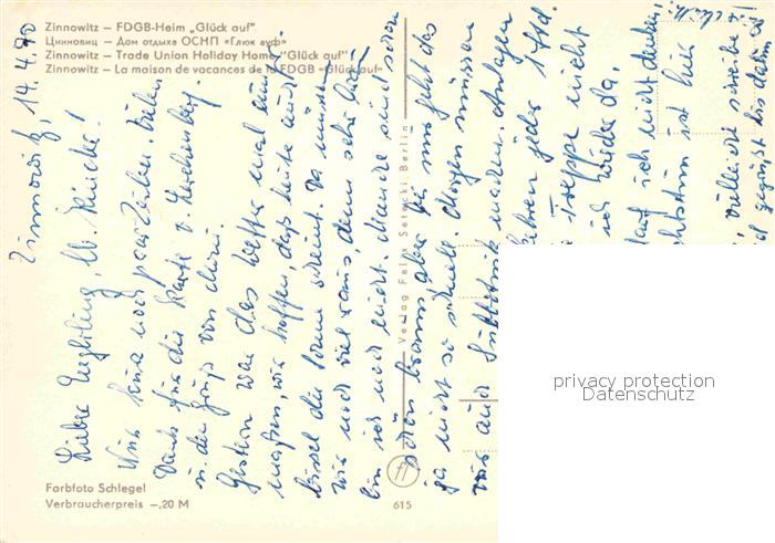 72781235 Zinnowitz Ostseebad FDGB Heim Glueck auf postalisch nicht gelaufen Erhaltung siehe scans [FriedD77] KatCode: 11110013059107