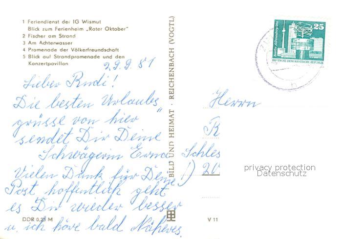 73100478 alte Postkarte Zinnowitz Ostseebad Feriendienst IG Wismut Ferienheim Roter Oktober Achterwasser postalisch gelaufen Erhaltung siehe scans [KathaD81] KatCode: 11110013059107