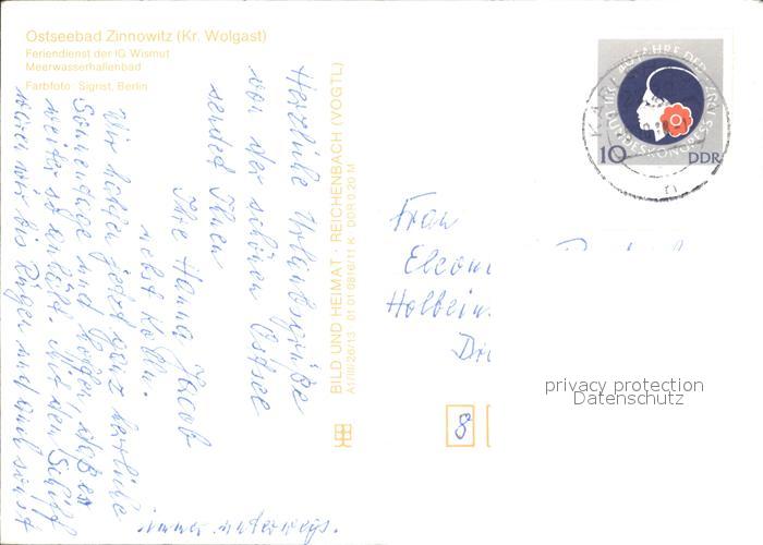 72370715 alte Postkarte Zinnowitz Ostseebad Feriendienst IG Wismut Meerwasserhallenbad postalisch gelaufen Erhaltung siehe scans KatCode: 11110013059107