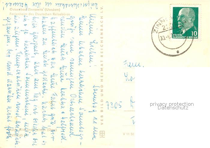 73096010 alte Postkarte Zinnowitz Ostseebad Ferienheim Deutsches Reisebuero postalisch gelaufen Erhaltung siehe scans [KathaD81] KatCode: 11110013059107