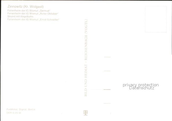 72519158 Zinnowitz Ostseebad Ferienheim IG Wismut Gertrud Roter Oktober Strand Kegelbahn postalisch nicht gelaufen Erhaltung siehe scans KatCode: 11110013059107