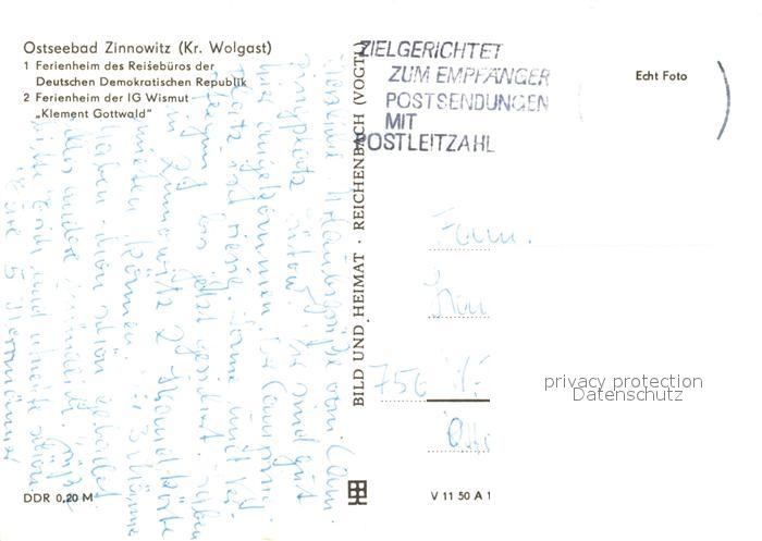 73045509 alte Postkarte Zinnowitz Ostseebad Ferienheim IG Wismut Reisebuero DDR postalisch gelaufen Erhaltung siehe scans [KathaD81] KatCode: 11110013059107