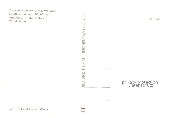 73049590 Zinnowitz Ostseebad Ferienheim Roter Oktober Wandelhalle postalisch nicht gelaufen Erhaltung siehe scans [PaolaD17] KatCode: 11110013059107