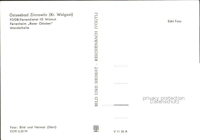 72385610 Zinnowitz Ostseebad Ferienheim Roter Oktober Wandelhalle postalisch nicht gelaufen Erhaltung siehe scans KatCode: 11110013059107