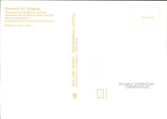 72585633 Zinnowitz Ostseebad Ferienheime Strand Kegelbahn postalisch nicht gelaufen Erhaltung siehe scans [LiesaD40] KatCode: 11110013059107