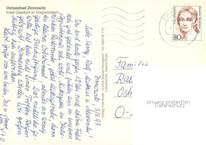 73070574 alte Postkarte Zinnowitz Ostseebad Fliegeraufnahme postalisch gelaufen Erhaltung siehe scans [FriedD77] KatCode: 11110013059107